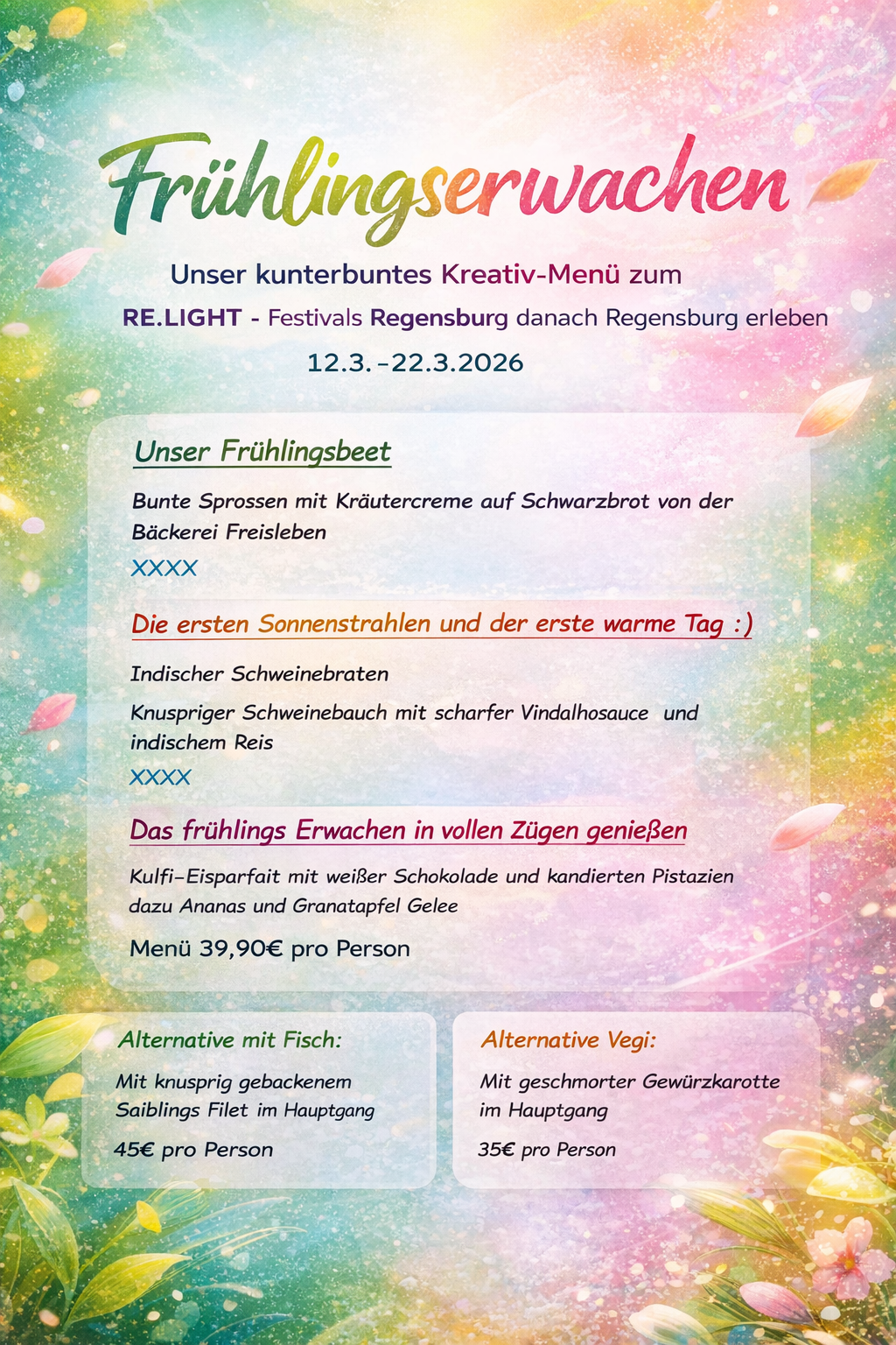 Valentinstag!!! Unser Gourmetmenü  inkl. 1 Glas Cremant! Gleich reservieren
